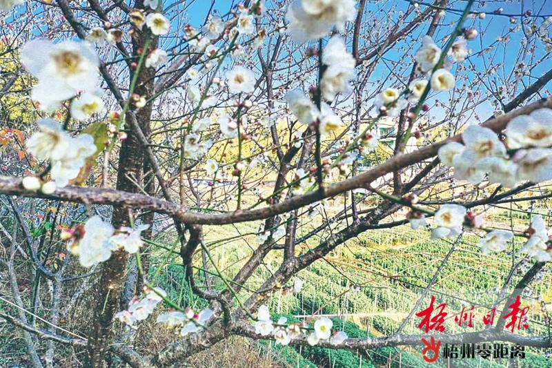游人在蒼梧縣獅寨鎮(zhèn)古東村森木組觀賞梅花。 黎杰源 攝