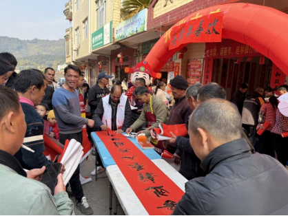“年豬宴”是廣西傳統(tǒng)農(nóng)村文化中一項(xiàng)富有深厚意義的特色民俗活動(dòng),不僅豐富了村民的精神文化生活,也促進(jìn)了鄉(xiāng)風(fēng)文明與團(tuán)結(jié)。桂林銀行梧州分行依托農(nóng)村普惠金融綜合服務(wù)點(diǎn),聯(lián)合各地基層黨組織開(kāi)展“年豬宴”活動(dòng),活動(dòng)將自然風(fēng)光、人文情懷與金融服務(wù)巧妙融合,鄉(xiāng)親們不僅品嘗了香氣四溢的年豬,還參與了寫(xiě)春聯(lián)、趣味游戲、農(nóng)技比賽等豐富多彩的環(huán)節(jié),現(xiàn)場(chǎng)歡聲笑語(yǔ),其樂(lè)融融。 助力農(nóng)產(chǎn)品“出村進(jìn)城”,促進(jìn)新春消費(fèi)