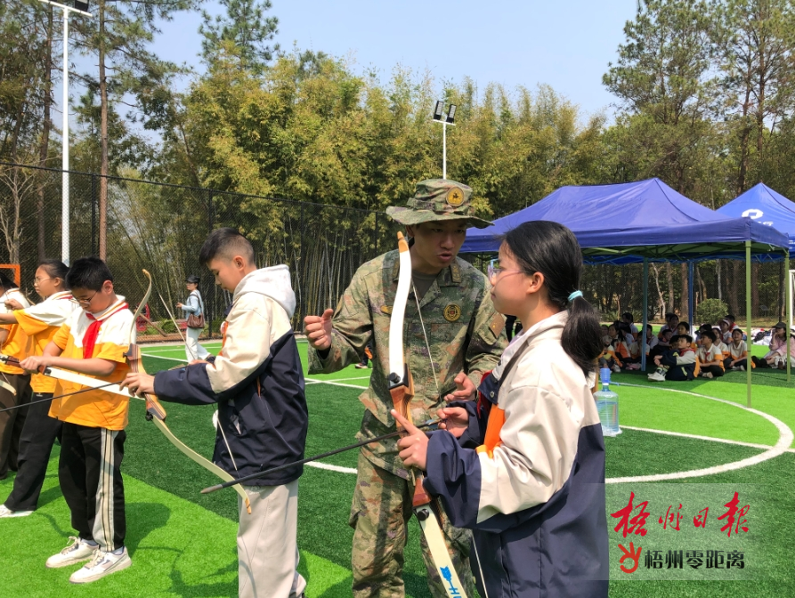 梧州零距離網-梧州日報訊(記者 覃競儀 通訊員 唐冰清) 日前,梧州市融媒體中心梧州日報社小記者聯盟組織市龍圩鎮中心校的數百名學生到龍圩區新地鎮詩畫富回研學基地,以“踐墨韻書香理念 品非遺傳統文化 ”為主題,開展中華傳統文化藝術傳承研學活動。活動中,學生們通過學習拱手禮、體驗活字印刷術、練習射箭等,感受中國傳統文化的博大精深,提高藝術修養和審美情趣。
