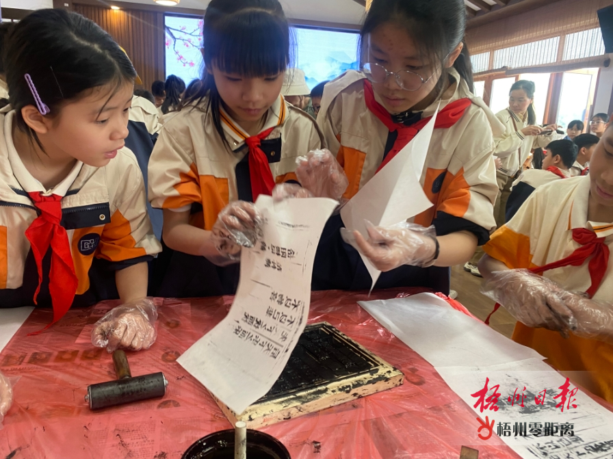 學生們體驗活字印刷,感受傳統文化的魅力。 記者 覃競儀 攝