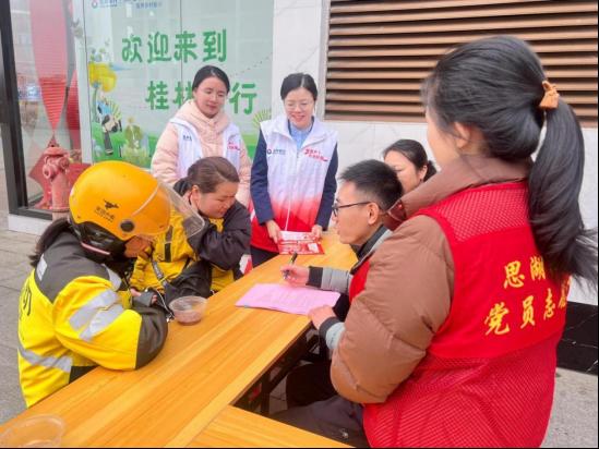 為傳承和弘揚雷鋒精神,積極踐行“為人民服務”的根本宗旨,桂林銀行梧州分行黨委下轄黨支部聯合外部黨組織開展“‘驛’起學雷鋒 暖‘新’在行動”系列志愿活動,聚焦戶外勞動者和社區居民的實際需求,送去溫暖與關懷。活動現場,黨員志愿者們早早準備好熱氣騰騰的暖心粥和黑米茶,迎接城市里的“擺渡人”。外賣小哥、快遞員、環衛工人等戶外勞動者停下忙碌的腳步,接過這份飽含溫度的早餐,幸福的笑容綻放在他們臉上。一位外賣小哥感慨道:“平時忙起來顧不上吃早飯,今天能喝到這么暖心的粥,心里特別感動。”