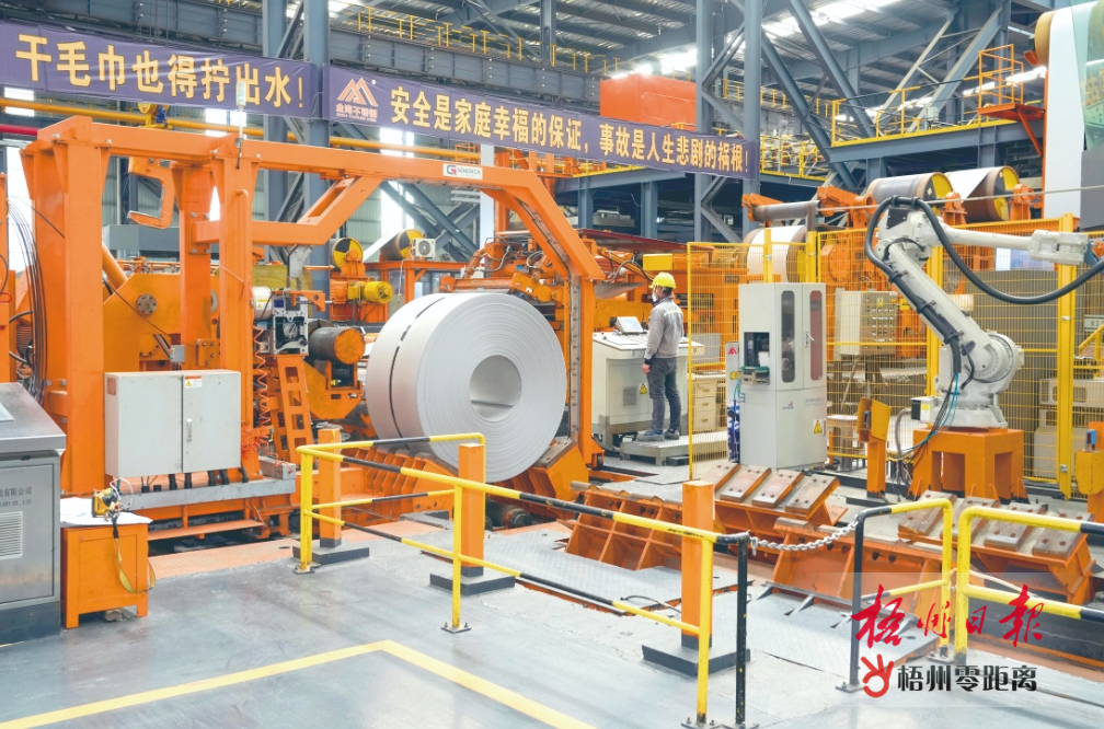 春日的午后,陽光和煦溫暖。走進(jìn)位于梧州市長洲不銹鋼制品產(chǎn)業(yè)園區(qū)的梧州市金海不銹鋼有限公司生產(chǎn)車間,目之所及,機器飛速運轉(zhuǎn),依靠數(shù)字化系統(tǒng)精細(xì)化運作,其生產(chǎn)環(huán)節(jié)實現(xiàn)智能化,現(xiàn)場只需五六人,便可高效驅(qū)動大規(guī)模生產(chǎn),企業(yè)生產(chǎn)效率提升20%,公司依靠技術(shù)改造進(jìn)一步挖掘產(chǎn)業(yè)升級空間。