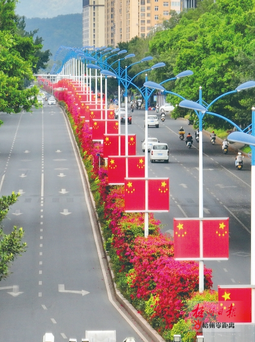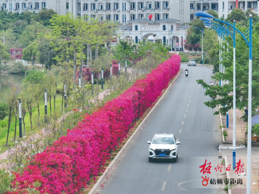 經過市政園林部門的悉心培育,新興一路、新興二路、新興三路以及新興三路延長線車道中央隔離帶的寶巾花競相綻放,與路邊翠綠的行道樹相映成景,構成一幅美麗的城市春日畫卷。梧州日報記者 何鎏 攝