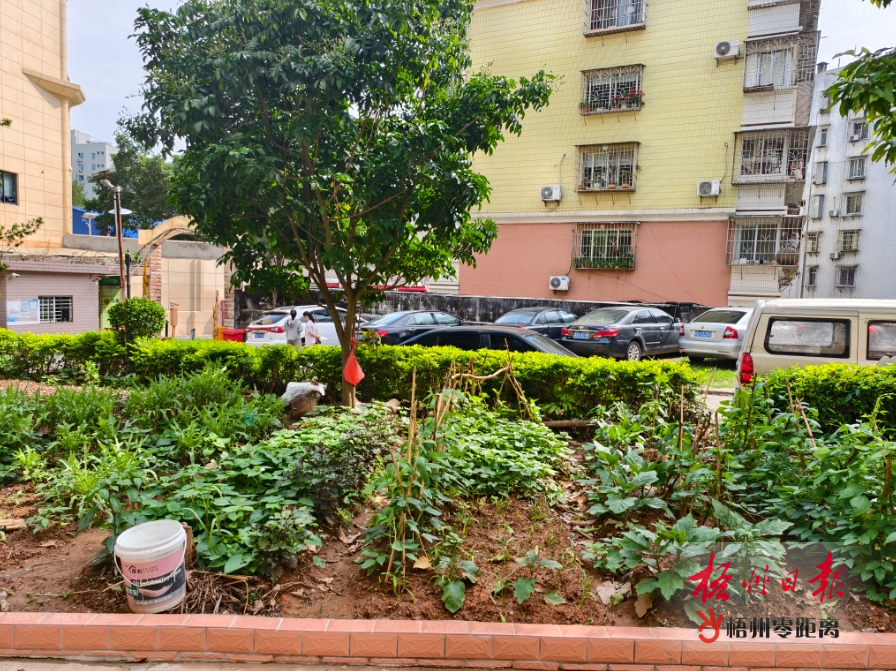 5月6日,記者來到立基新苑小區看到,其與地質隊宿舍是相鄰的兩個住宅小區,其中地質隊宿舍8棟與立基新苑小區只有一墻之隔,一個面積約20平方米的綠化帶位于立基新苑小區B-3棟對出位置,距離地質隊宿舍8棟約10米。記者觀察發現,該綠化帶已種上紫蘇、茄子、油麥菜等,綠化帶的一個角落處還放置了一個雞籠,里面養著一只雞。