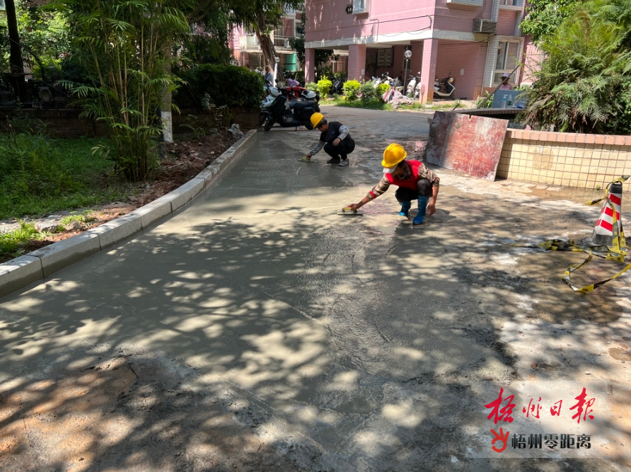 5月13日,記者再次走訪此地時看到,施工人員正有條不紊地為路面鋪設水泥,道路兩旁的植物景觀區域也被磚塊圍了起來。居民李女士表示:“希望早日完工,讓出行道路變得更順暢。”