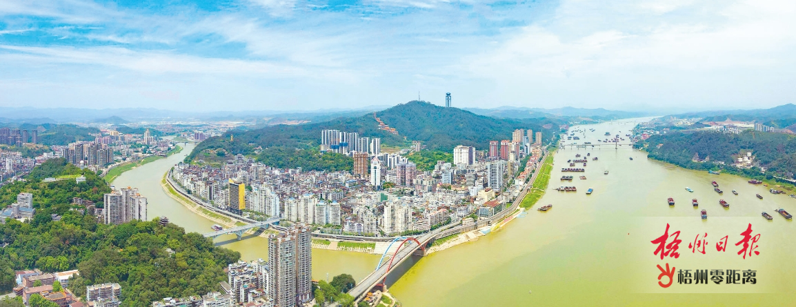 5月11日,陽光和煦,梧州城住宅錯落有致,山脈與江水環(huán)繞,勾勒出一幅靈動的生態(tài)畫卷(無人機照片)。