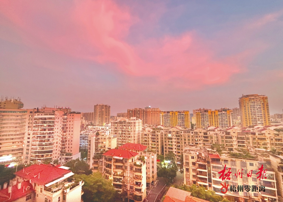 6月4日傍晚,落日余暉灑在長洲區(qū)的樓房上,大片絢麗的云霞鋪展開來,成為城市一道亮麗的風景。