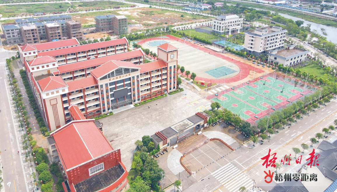 近日,俯瞰蒙山縣蒙山鎮第一小學(城南校區),嶄新的教學樓和運動場所令人眼前一亮(無人機照片)。