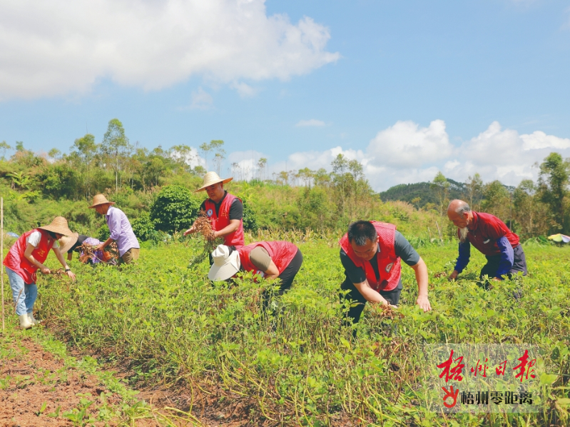 近日,“助農突擊隊”隊員幫助塘步鎮龍安村的農戶采收花生。 岳柱健 攝