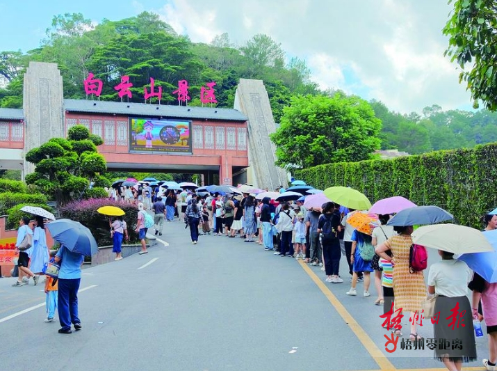 暑假期間,我市傳統(tǒng)景點游客量大增,在白云山景區(qū),上山游玩的游客更是打著傘在烈日下排起了長隊。