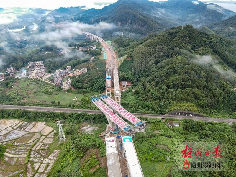 據了解,蒼昭高速是《廣西高速公路網規劃(2018-2030年)》橫5線的重要組成部分,全長約113.3公里。其中,坑沖大橋位于蒼梧縣梨埠鎮鳳儀村坑沖組,跨鐵主橋位于益湛鐵路正上方,是華南地區最大重量雙幅同墩轉體橋。