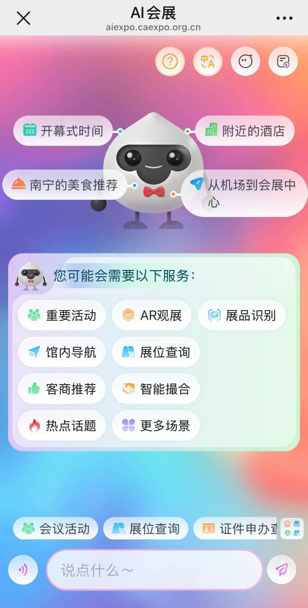 “AI會展”智能體整合大模型、多智能體、智能推薦等先進技術,面向參展企業與嘉賓提供涵蓋智能客服、導覽、會議安排、行程規劃、智能撮合等24類應用場景的個性化服務,并支持8種東盟語言,實現無障礙溝通。它是參展參會的“貼身秘書”,可陪看展、參會、找商機,是人工智能時代的創新應用。