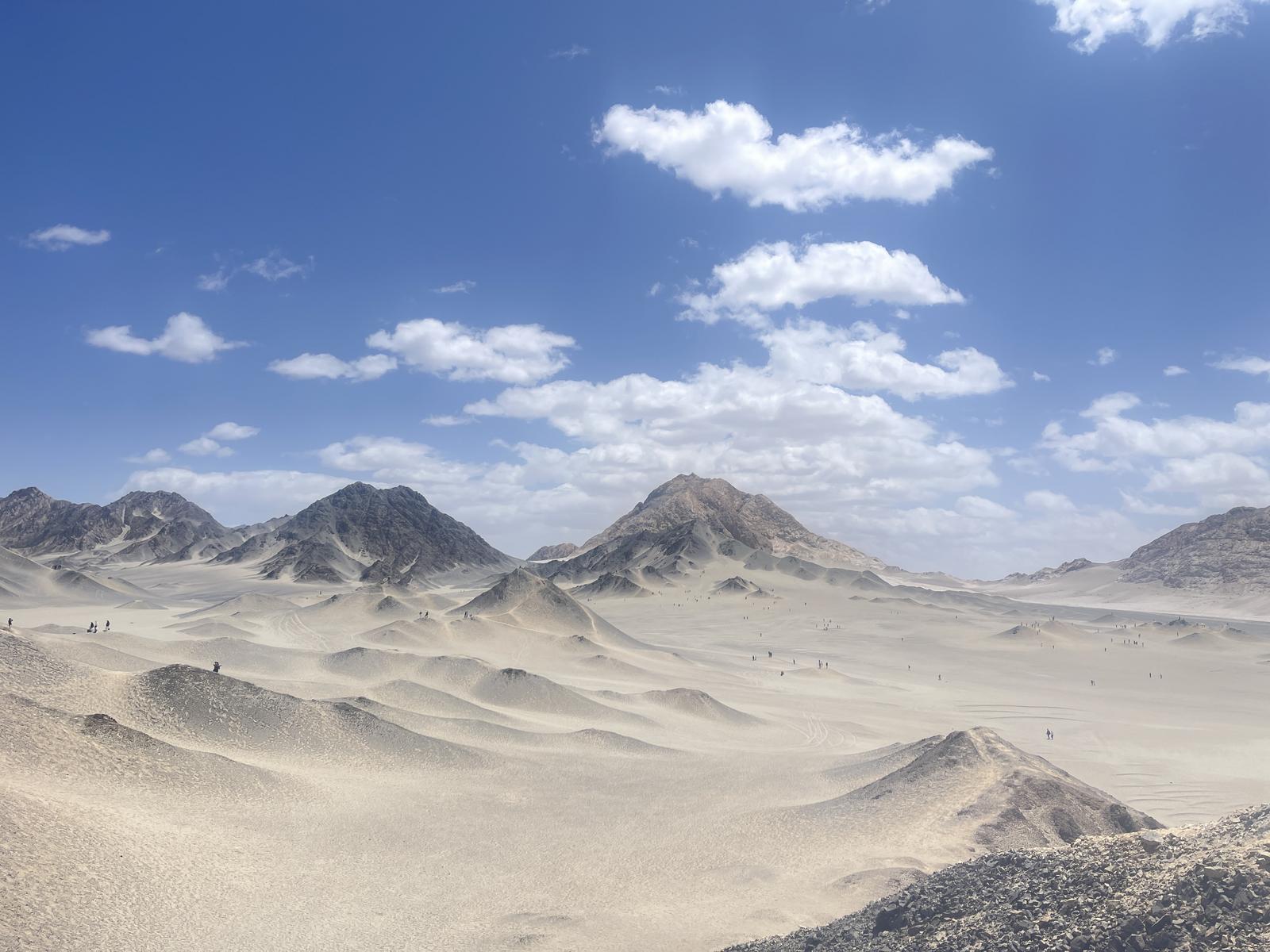 我們艱難地爬上一個小山包時,放眼望去,綿延無際的鉛灰山脊如凝固的巨浪,嶙峋溝壑似潑灑的濃墨,置身其中仿佛跌入一幅未干的水墨長卷,天地間只剩風與寂靜的回響。