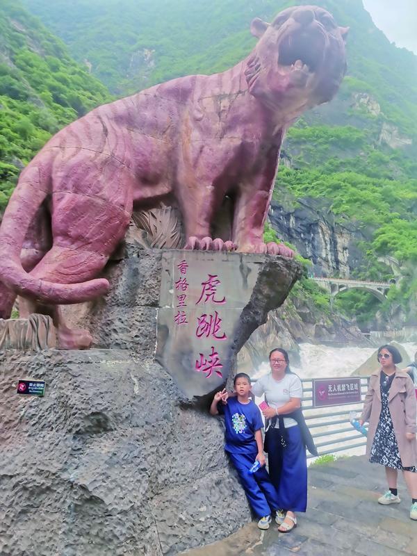 立秋時節,我攜家人前往虎跳峽游覽。此峽谷位于云南玉龍雪山與哈巴雪山之間,山勢險峻江水洶涌,自古便以雄奇壯麗著稱。我們沿著蜿蜒的山路下行,步行數千步才到達峽底。一路上淫雨霏霏,山風勁疾,越走越覺得兩岸峭壁如削直插云霄。