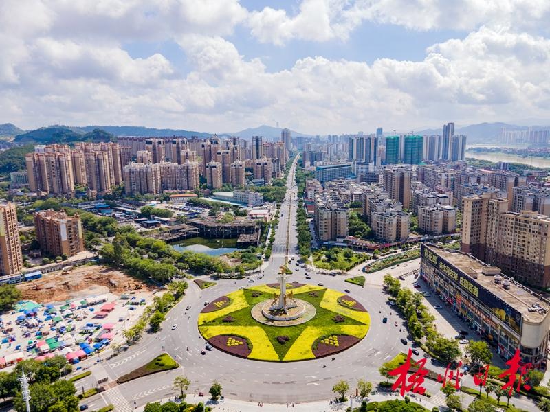近日,在三龍大道轉(zhuǎn)盤,造型獨(dú)特的龍魚(yú)雕塑和精心布置的綠植相互映襯,車輛有序通行,周邊高樓林立,遠(yuǎn)處的山巒與江水若隱若現(xiàn),展現(xiàn)出梧州蓬勃發(fā)展的城市風(fēng)貌與獨(dú)特的山水魅力(無(wú)人機(jī)照片)。
