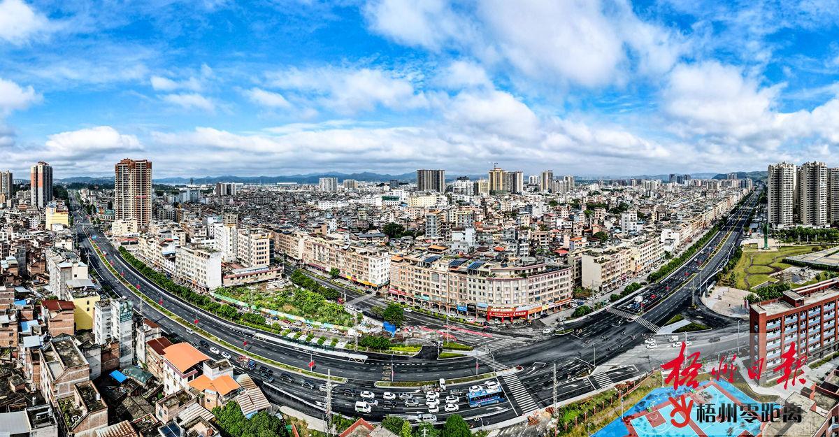 該路段進行排水防澇治理工程改造后,綠化帶、公交車站臺等設施進一步完善,道路通行效率提升,贏得市民好評。梧州日報記者 李燦明 攝