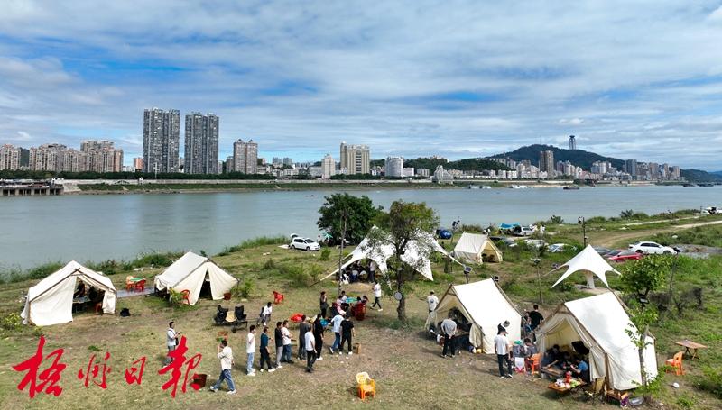 11月9日,市民在西江邊野餐營地游玩(無人機照片)。