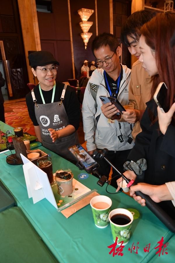 11月12日,2025“梧州六堡茶”新茶飲產品研發推廣活動在江濱國際大酒店舉行,參賽選手向評委和嘉賓推介新研發的六堡茶茶飲。記者 李鴻榮 攝
