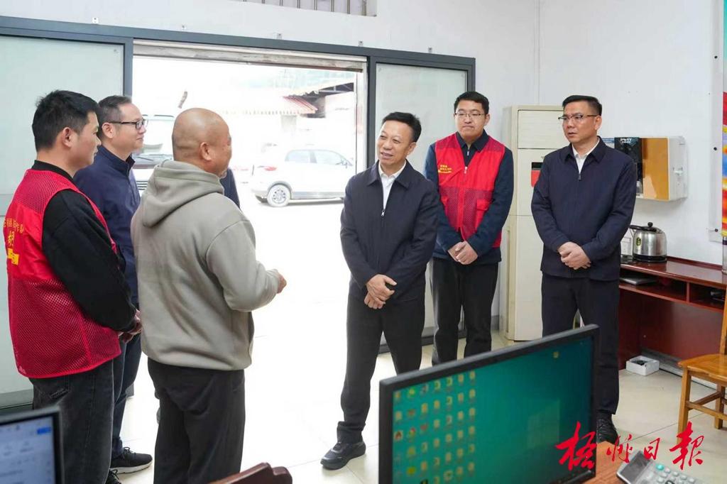 會前,蔣連生來到旺甫鎮龍洞村金桔基地,實地調研鄉村特色產業發展情況,鼓勵金桔基地負責人做優產品、做強品牌,把基地越做越大,帶動更多農戶增收;要求當地黨委、政府主動靠前服務、加強技術指導,助力種植大戶拓渠道、闖市場,讓鄉親們的增收路越走越寬。蔣連生來到龍洞村村民委員會,調研“五好”農村基層黨組織建設情況。“花時間最多的工作有哪些?處理最多的事是什么?”在與一線黨員干部親切交流時,蔣連生指出,基層黨組織是黨密切聯系群眾的橋梁和紐帶,要以“五好”作為農村基層黨組織建設的標桿,選好村黨組織帶頭人,配強村“兩委”班子,強化基層治理效能,提高為民服務水平,發展壯大特色產業,更好帶領群眾共同致富。蔣連生還來到龍洞村袍村組,現場協調解決龍洞村主干道路邊坡垮塌修護問題,強調要用心用情為群眾辦實事解難題,及時修護垮塌邊坡,排查消除安全隱患,加強現場安全管理,確保群眾出行安全。隨后,蔣連生走進旺甫鎮旺甫片區人大代表聯絡站,與基層人大代表見面交流,詳細了解聯絡站工作開展情況。