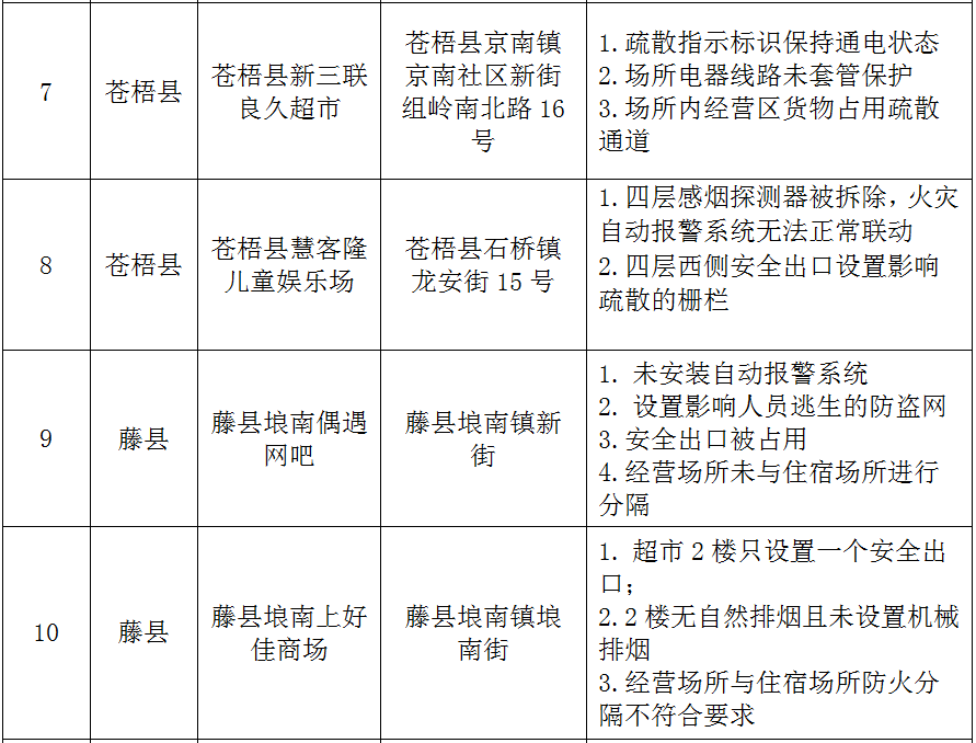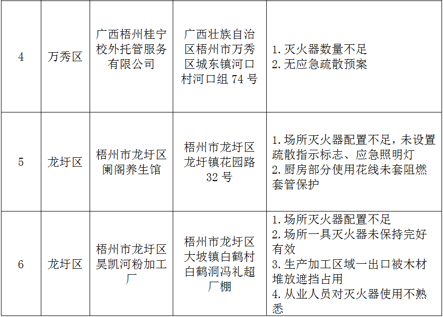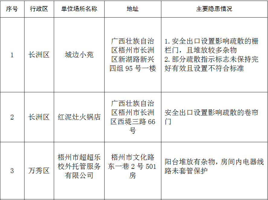 梧州市2025年四季度火災(zāi)隱患集中曝光清單