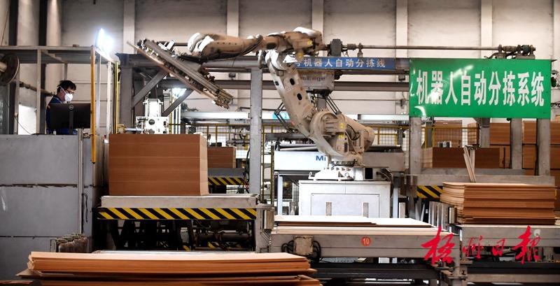 12月17日,在廣西三威家居新材股份有限公司,自動機器人正在檢測板材制品。