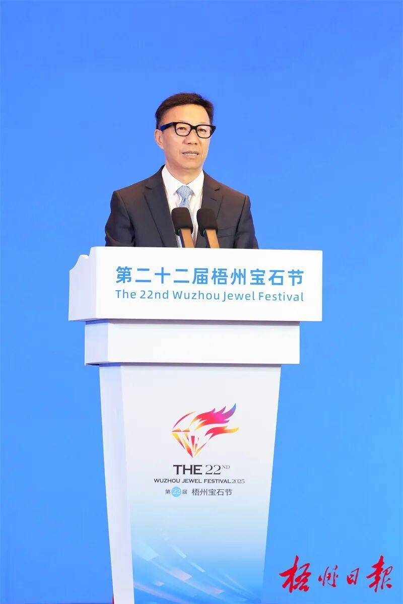 梁藝光在致辭中表示,廣西國際博覽事務局作為梧州寶石節的共同主辦方,多年來始終大力支持梧州寶石節籌辦和發展。在今年第22屆中國—東盟博覽會上,廣西國際博覽事務局與梧州市一道精心打造科技寶石人工智能展區,全方位展示梧州寶石產業在智能質檢、AI設計、自動化鑲嵌等領域的先進技術與創新產品,充分彰顯“梧州智造”的硬核實力,進一步拓展了梧州寶石產業國際合作空間。2026年是中國—東盟建立全面戰略伙伴關系5周年,廣西國際博覽事務局將高水平辦好第23屆東博會,推動東博會升級發展,助力梧州寶石產業更好走出廣西、走向全國、閃耀世界。