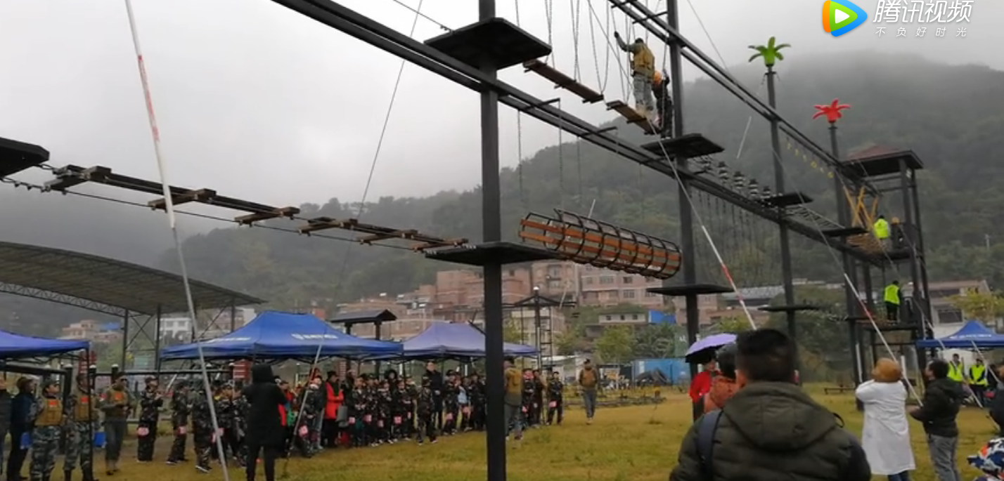 特戰少年隨手拍作品說明:2019年1月5日,特戰少年——梧州市少年兒童國防軍事體育挑戰賽復賽,在梧州軍事體育文化園內進行。在高空挑戰項目中,一位小女生因恐懼中途停下腳步,于是全場的小朋友和家長自發地為她加油鼓勁,最終這名小女生克服了恐懼,完成比賽,場面感人而振奮。
