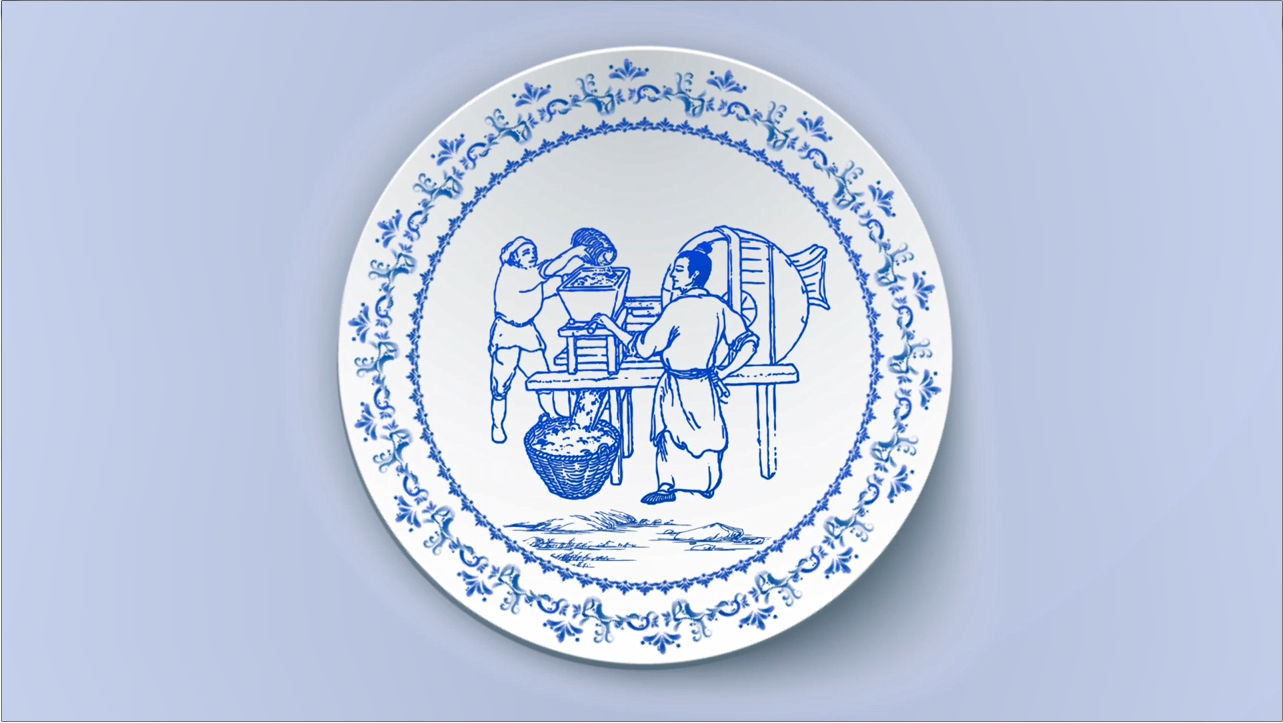 勤儉節約,傳承中華美德作品說明:公益廣告以青花瓷碟結合糧食生產的畫面創意設計。體現了勤儉節約是中華傳統美德,勤儉節約、珍惜糧食是一種美好的傳承。