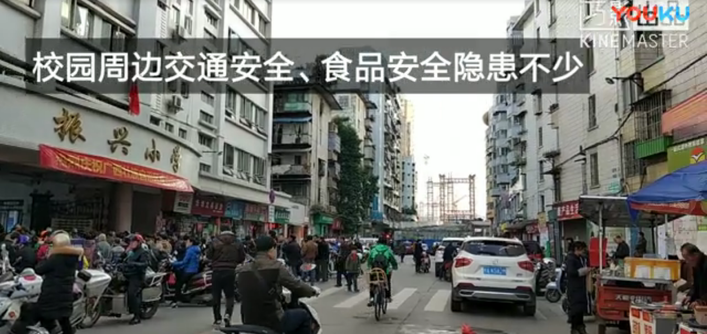 校園周邊的安全隱患作品說明:每天中午、傍晚的放學時間,振興小學門口都會出現大量接送學生的車輛,不少車輛甚至亂停亂放,使原本狹窄的道路更為擁擠,交通擁堵矛盾突出。