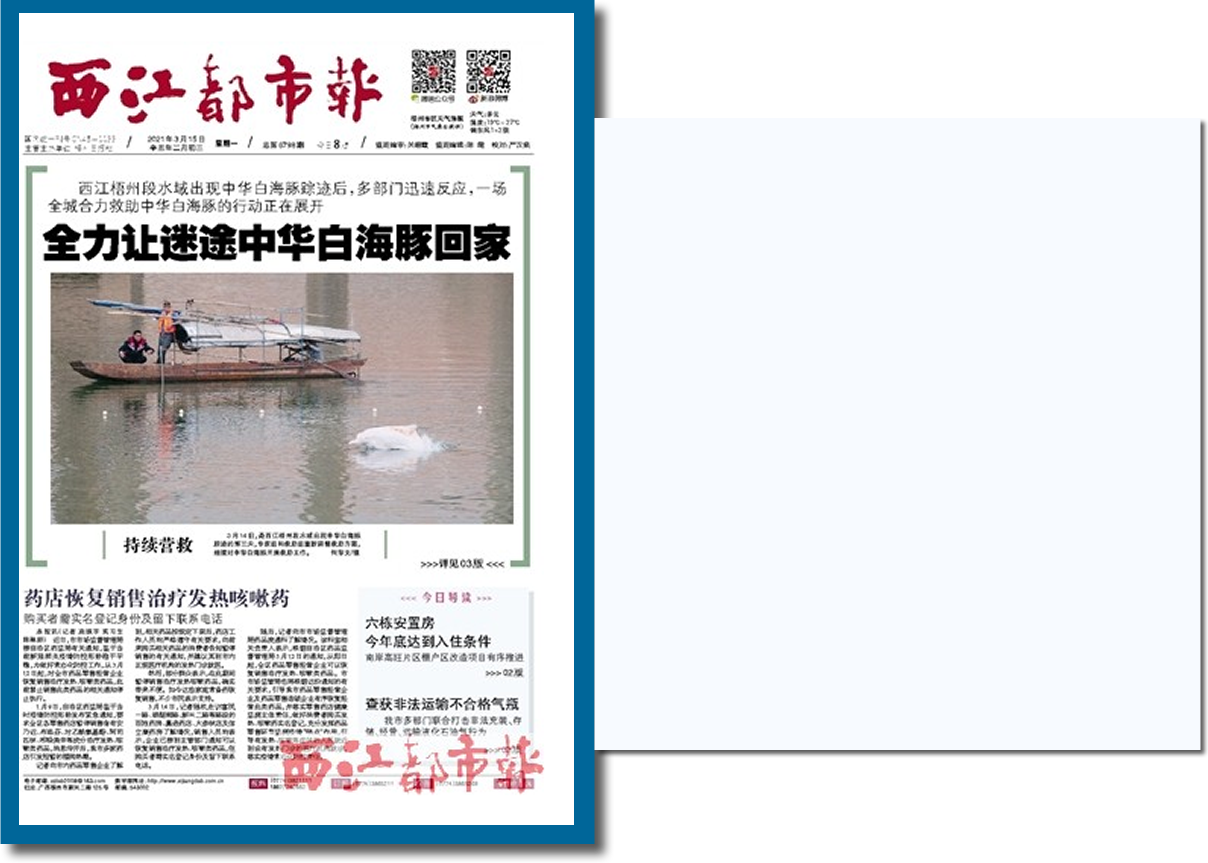 3月12日,西江梧州段發(fā)現(xiàn)中華白海豚后,梧州市委、市政府高度重視白海豚的救助工作,多部門聯(lián)動,立即出臺通告,禁止所有捕撈作業(yè),暫停航道疏浚、水下爆破等施工……一場全城合力救助中華白海豚的行動正在展開。