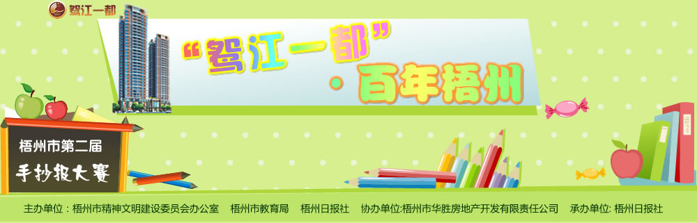 今年是中國共產黨建黨90周年和紀念辛亥革命100周年。為了進一步加強未成年人的愛國主義教育和提高他們的思想道德素質, 讓青少年了解梧州的歷史文化。市文明辦、市教育局、梧州日報社聯合舉辦“鴛江一都?百年梧州”梧州市第二屆手抄報比賽活動。 參賽對象: 1、小學組(4-6年級)、初中組(1—3年級)的學生 2、經過培訓的梧州日報小記者學員。 參賽組別: 小學組(4-6年級)、初中組(1—3年級) 小抄報版面設計要求: 1、版面編排和設計均在現場完成。 2、文具自備,抄寫文章一律用鋼筆,繪制圖案用彩色筆。 3、小學組排入文章3篇以上,插圖3幅以上,中學組排入文章5篇以上,插圖3幅以上。 4、相關需抄寫的文章及用到的圖案樣式選手自備。 5、手抄報名稱自定,要求簡明、貼切。 6、用紙規格:決賽由主辦方統一提供用紙,自備用紙無效,參考尺寸為27cm×39cm(即《西江都市報》一個整版大小)。 7、作品要求主題突出,組稿合理;用色協調、版式美觀、圖文布局合理;標題制作醒目、大方。 8、作品必須標注所在學校名稱、作者姓名、所在年級、班級及指導老師等信息。 9、比賽結束后,作品直接交組委會工作人員組織評審。 |