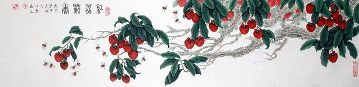Q04紅荔飄香(中國(guó)畫)1330×340(mm) 定價(jià):3000元