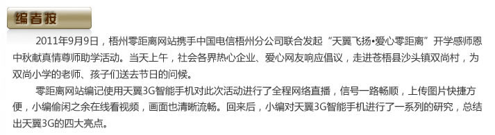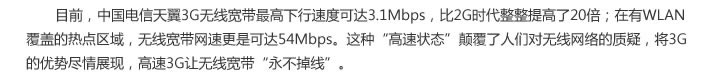 | 再高、再遠(yuǎn)、再快的地方 都有天翼3G伴你左右 |
