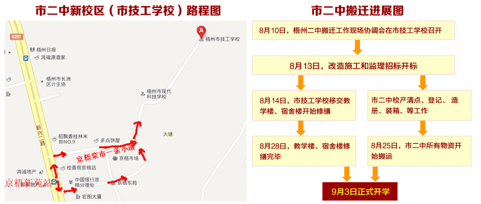 ??? 按照市政府的有關文件精神,為配合萬秀區石鼓沖及毗鄰地段地質災害綜合整治工程,位于石鼓沖毗鄰地段整治范圍的梧州市第二中學,今年秋季開學將臨時搬遷至市技工學校上課,直至位于南岸的新校區建成。