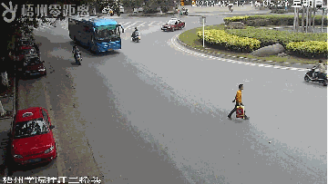 當日下午1時50分,在人行橫道行人通行綠燈亮起的狀態時,小龍走在人行橫道中央,此時一輛忽然沖過來的助力車以極快的速度撞到正在過馬路的小龍身上,連撞帶拖繼續前行了一段距離。隨后,助力車車主重新啟動車子逃逸。