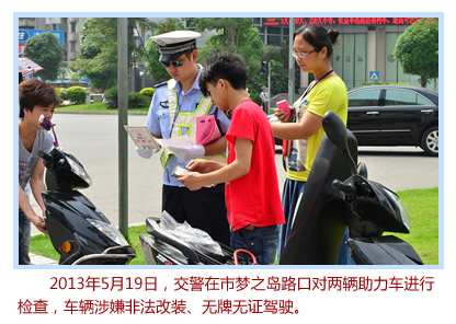近日,記者查看了蝶山區交警大隊的視頻監控庫中2012年9月以來共接報的235個車禍視頻,粗略統計,當中8成以上為助力車事故。從視頻中可以看到,助力車駕駛者為貪圖方便,亂穿馬路、逆行繞道、闖紅燈的亂象比比皆是。更有甚者,駕駛著改裝得很“拉風”的助力車,搭載著一兩名年輕女生,在道路中間快速行駛,左穿插右,大擺S型,并隨意超車。無論白天黑夜,他們都會打開車尾加裝的閃閃發亮的彩燈,在馬路上顯得特別刺眼。