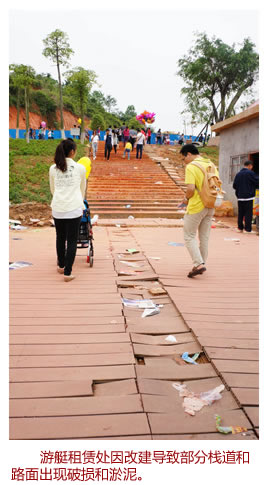 另一方面,由于公園建設(shè)工期過(guò)長(zhǎng),出現(xiàn)了部分項(xiàng)目在移交時(shí)已經(jīng)過(guò)了質(zhì)保期的尷尬情況。如親水棧道就是玫瑰湖公園一期提升工程的項(xiàng)目之一,據(jù)市城投公司表示,該項(xiàng)目已在2011年完成驗(yàn)收,現(xiàn)在已經(jīng)過(guò)了質(zhì)保期,出現(xiàn)的損毀理應(yīng)由管理方負(fù)責(zé)維修。而于2013年3月介入管理的梧州市玫瑰湖公園管理站(以下簡(jiǎn)稱玫瑰湖管理站)的有關(guān)工作人員則認(rèn)為,移交前棧道已出現(xiàn)破損,因此應(yīng)由建設(shè)方來(lái)修復(fù)。后來(lái),雙方經(jīng)過(guò)多次協(xié)商,市城投公司答應(yīng)在天氣允許的情況下,讓原施工單位盡快修復(fù)。