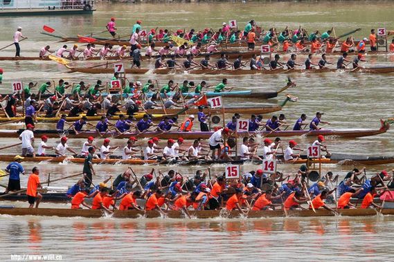 | 2014年6月2日(農歷五月初五)上午11時。在西江河段舉辦2014年梧州市龍舟大賽,起點設在西江大橋汊河橋下河面,終點設在云龍大橋前河面,全程7500米。賽后在鴛江春泛公園進行頒獎儀式。 |