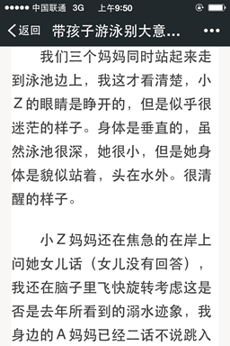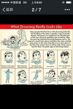 網帖中提及,溺水的兒童不一定會大喊大叫驚慌失措,很多時候是站立的樣子,沒有掙扎,沒有呼叫,也沒有平躺,連身邊的大人都不易察覺。對這種說法,李教練認為,這是有可能發生的。在陸上游泳池,由于池中的消毒成分會對兒童脆弱的呼吸道產生刺激,會相應加重兒童嗆水的程度,所以無論是救生員還是家長,都不應掉以輕心。