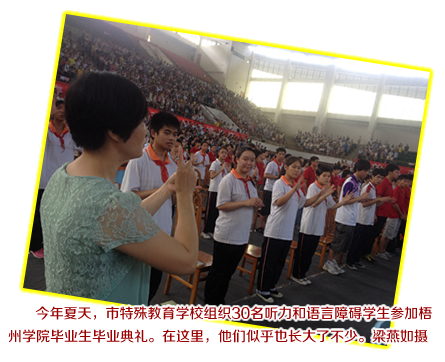 在南京特殊教育學院學習了3年聾兒教育專業(yè),劉敏麗回到梧州想投身于自己喜歡的這一份工作,卻發(fā)現(xiàn)梧州根本還沒有開展針對聾啞兒童的相關教學。在全市唯一一所專門接收特殊兒童的培智學校(市特殊教育學校的前身),只有一兩個聾啞兒童在隨智力障礙的孩子跟班就讀。在學校的支持下,劉敏麗和幾位特教老師親自上門,挨家挨戶動員聾啞兒童的家長把孩子送來學習。多番努力下,1995年梧州第一個聾兒班開班,班里只有7名學生。