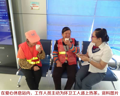 也許,只有社會這個大家庭真正接納和善待了環(huán)衛(wèi)工們,“愛心休息站”才能更好地發(fā)揮作用吧。 |