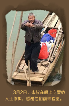 寒冬剛剛過去,柒叔的魚籠晾在岸邊的竹篙上,靜靜地吹著河風(fēng)。柒叔指著那些魚籠說:“之前天氣冷,魚蝦都躲起來了,捉不到魚的,這兩天天氣暖了,我會(huì)把魚籠放下去,應(yīng)該能得一些魚的。”這些話聽起 來更像是柒叔在安慰自己的,因?yàn)槭聦?shí)上近十幾年來,柒叔幾乎已經(jīng)沒有什么收入來源,他的生活主要依靠附近的好心人家?guī)头鲋?/p>