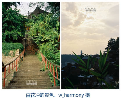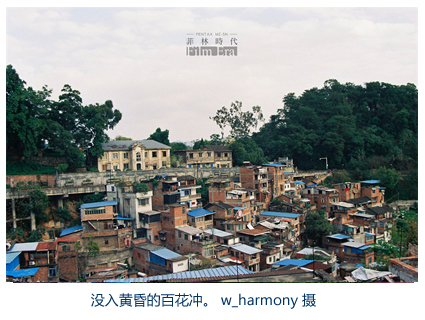 傍晚時分的百花沖,籠罩在金燦燦的陽光下,有著少有的平靜。曾經人來人往的沖道街巷,鮮見年輕男女,本應四處游蕩的小狗也了無蹤影,在家門口淘米洗菜的老奶奶露出了慈祥的笑容,幾個老爺爺圍坐在自家門前的石階上,納涼聊天,話語不多,卻這樣安靜地互相陪伴著。曾經門口圍滿了孩子的那家小小糖煙店,如今門可羅雀,從店鋪里屋的深處傳出了空幽婉轉的粵曲。