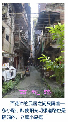曾經作為梧州最繁華街巷之一的百花沖,漸漸地成為了典型的城市棚戶區:建筑質量差、簡易結構房屋多、建筑密度大、使用年限久、人口居住密度大、基礎配套設施不完善、衛生環境條件差,存在容易造成山體滑坡、泥石流等地質災害的安全隱患,更是治安和消防隱患重的地區。