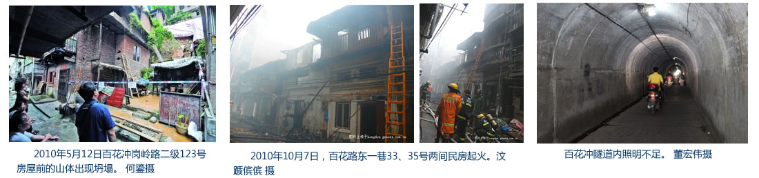 同年10月7日下午,百花路東一巷33、35號兩間民房起火,由于山沖道路狹窄,舊民居消防設施不完善,消防車很艱難才駛近起火點,一個小時后大火才被完全撲滅。人雖然沒事,但這些磚混結構的房子,樓板和屋頂基本被燒塌了。