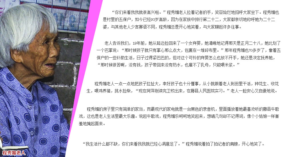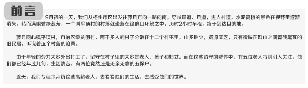 這些已年過九旬的老人,他們或許已經不太能用語言流暢地表達自己了,卻總是默默地用他們那雙勤勞的手,守著清貧,依著故土。如果說生命在于運動,那么也許就是因為這些老人勤勞了一生,所以才如此長壽。他們是這個貧困村最寶貴的財富,但這個村卻沒辦法回饋他們同等的富足。