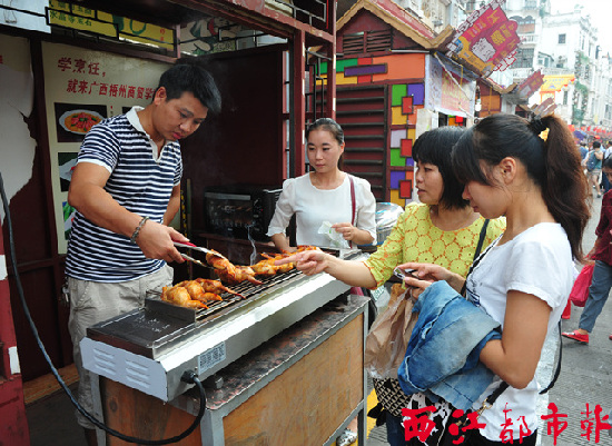 11月10日上午,市長朱學慶分別到梧州毅德商貿物流城、梧州騎樓城,檢查正在舉行的梧州名特優產品展銷會、嶺南美食節等寶石節系列活動。