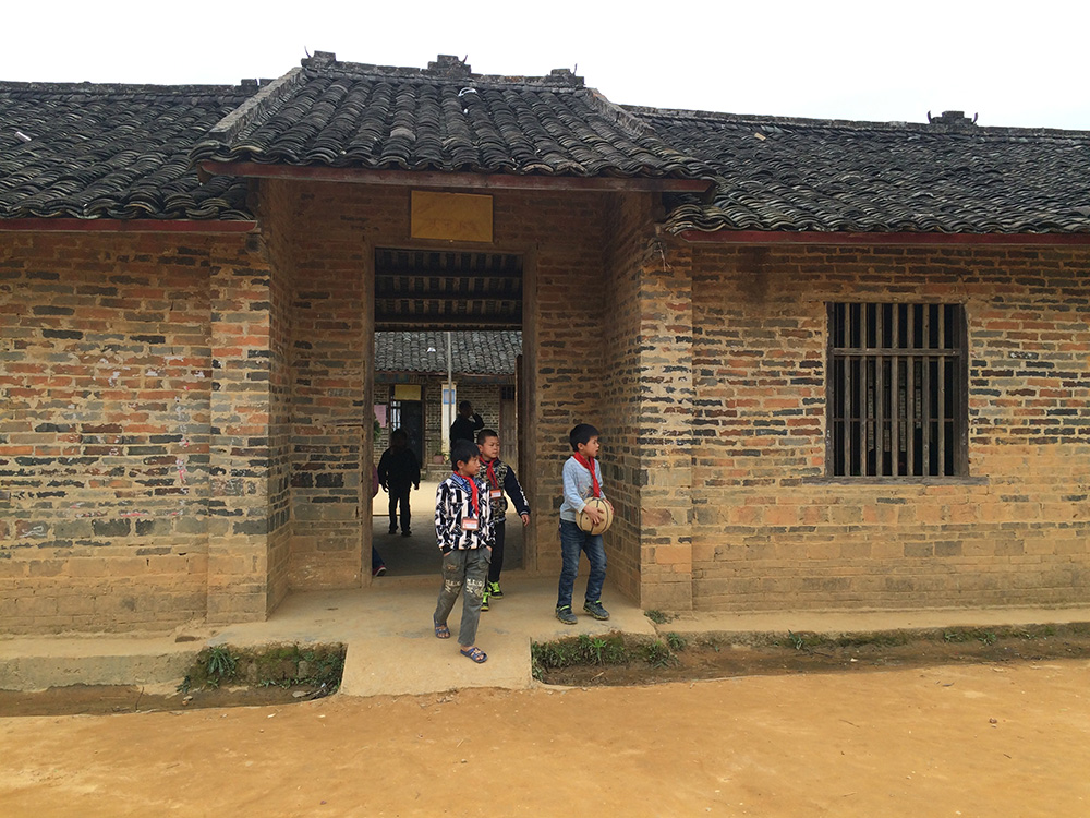 記者先后致電蒼梧縣政府、教育局、沙頭鎮政府,一層層轉駁終于聯系上太平小學的廖剛老師。在他的帶領下,記者從鎮中心乘車出發,經過2小時的顛簸,來到了學校所在的山腳,然后步行走上一條遍布亂石、高低不平的山路,在半山腰的黃土坡上,一排土黃色的磚瓦平房映入眼簾。這就是大平小學。