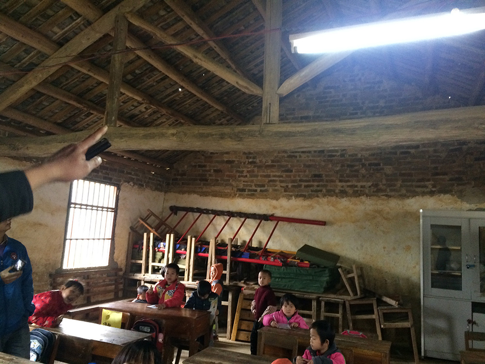 歷經數十年風雨,大平小學的磚瓦結構教學樓早就敵不過大自然的侵襲。雨天,教室外下大雨,教室里也下著小雨。大風天,松動的瓦片不知什么時候就會被刮落,甚至連貓、老鼠在房頂跑過,都能把房頂的瓦片碰落地上。