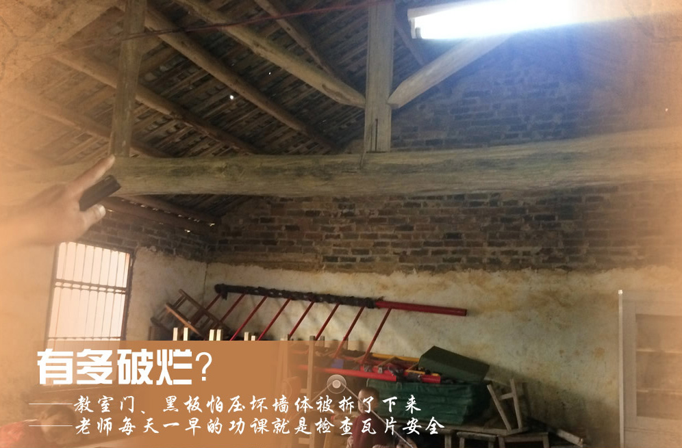 為防松動的瓦片砸傷學生,學校的老師們每天必須在所有學生上學前去到學校,用一根長竹竿輕輕敲打屋頂的瓦片,戳戳房頂,發現松動的瓦片便要立即取下來。